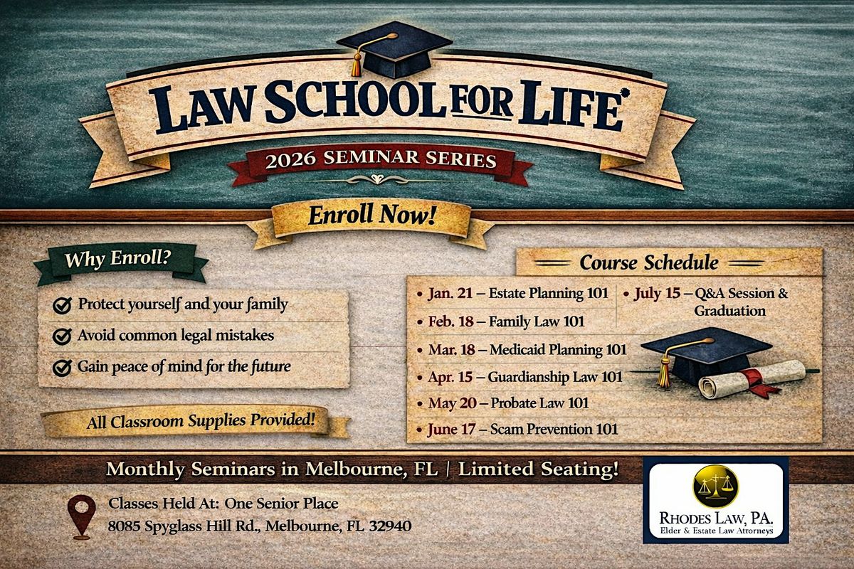 Law School for Life is a monthly educational seminar series designed for real people facing real-life legal questions. Led by Attorney Ruth Rhodes, each class breaks down complex legal topics into clear, practical information you can actually use.