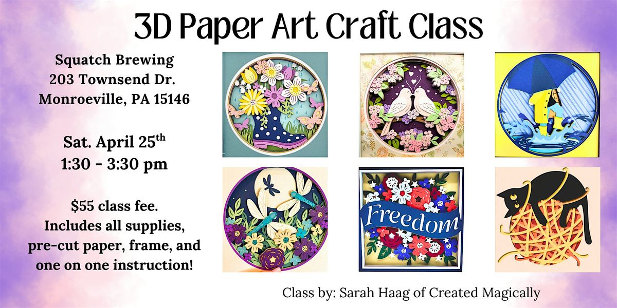 Welcome to the Layered Paper 3D Shadowbox Workshop at Squatch Brewing in Monroeville! Get ready to unleash your creativity and learn the art of paper crafting in a fun and relaxed atmosphere. This hands-on workshop will teach you various techniques to easily create stunning paper art pieces that you can proudly display in your home or give as unique gifts.