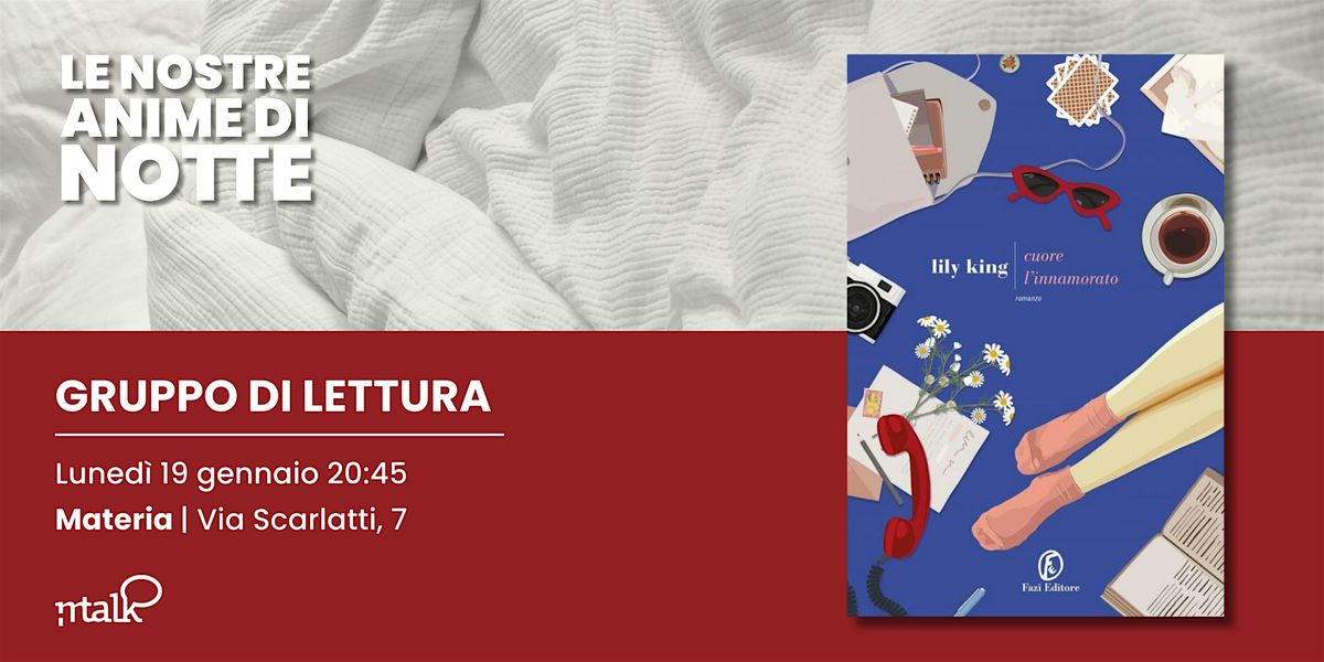 Le nostre anime di notte è un gruppo di lettura che dal 2017 si incontra ogni terzo lunedì del mese. Leggiamo libri di narrativa contemporanea ma ogni tanto scegliamo un classico, cercando sempre di privilegiare editori indipendenti e libri long seller. Sosteniamo le librerie indipendenti e diamo grande valore al lavoro dei traduttori.