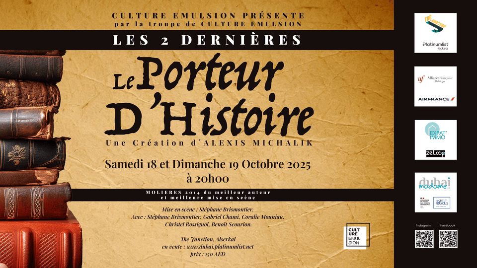 By taxi: You can also take a taxi to Al Serkal Avenue from anywhere in Dubai. It's a famous destination and most drivers would be familiar with its location. LA TROUPE DE CULTURE EMULSION proudly presents : LE PORTEUR D’HISTOIRE.