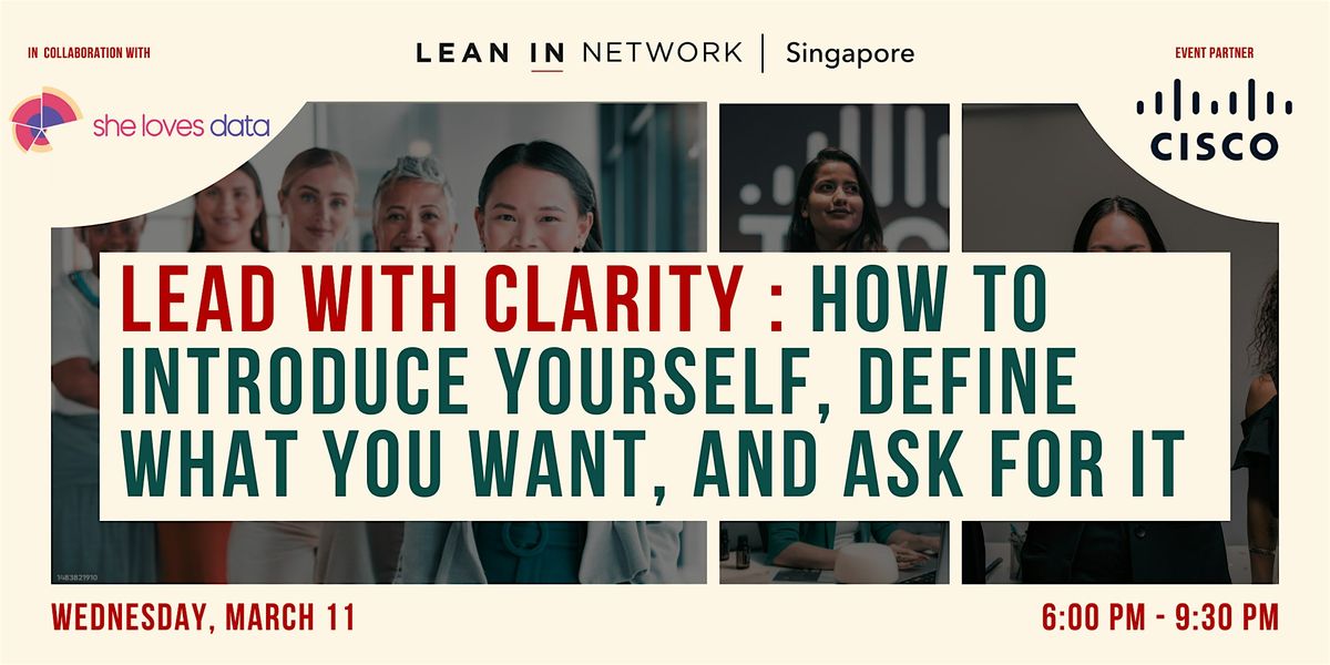 This International Women’s Day, Lean In Network, Singapore, in collaboration with She Loves Data and Cisco is hosting “Lead with Clarity” — a highly interactive workshop for mid to senior professional women who want to be more intentional about their career direction and visibility.