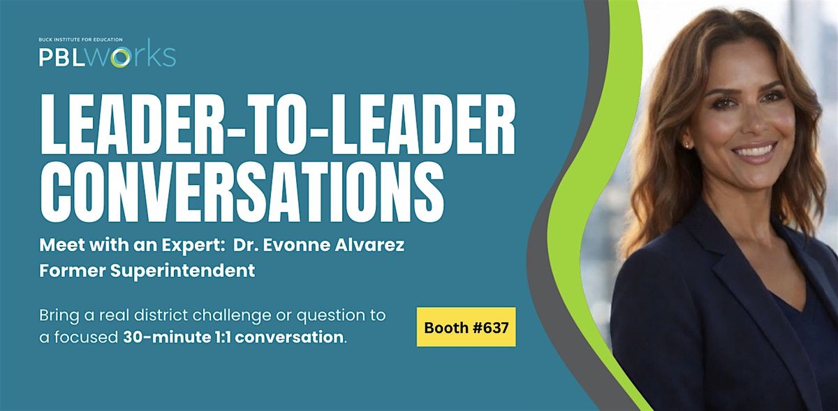 In a focused 30-minute, one-on-one conversation with Dr. Evonne Alvarez (Dr. EA)—former superintendent and PBLWorks Superintendent-in-Residence—you’ll walk away with clear next steps, practical options, and a thought partner’s perspective grounded in district realities.