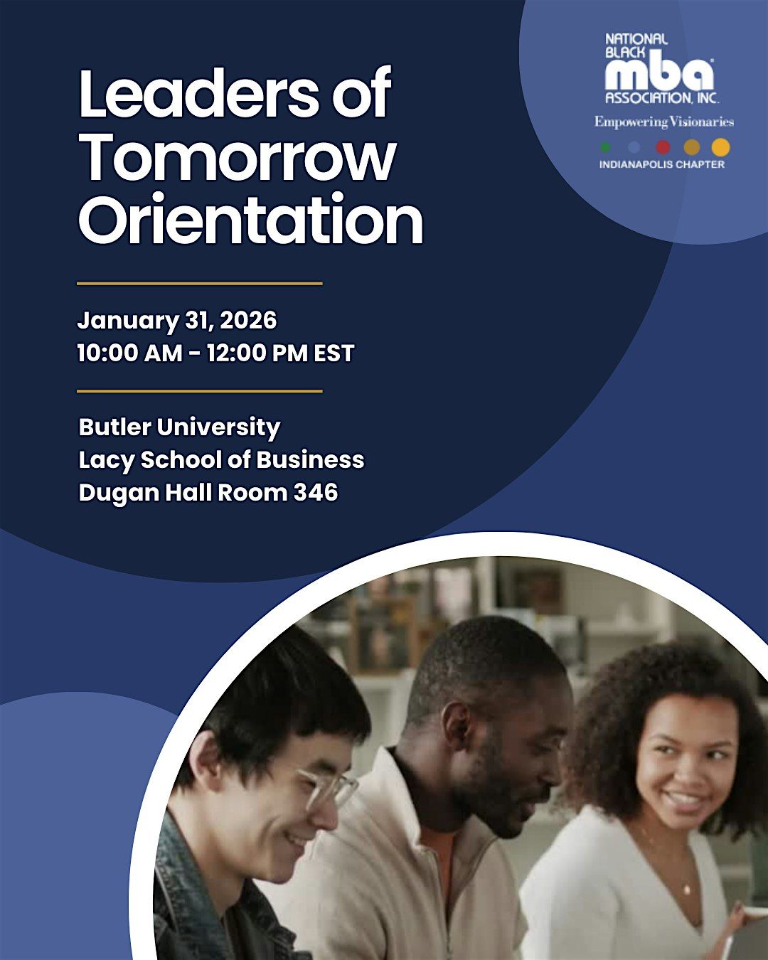 The National Black MBA Association, Inc. (NBMBAA) Indianapolis Chapter will be hosting the Leaders of Tomorrow® (LOT®) Orientation at Butler University's Lacy School of Business in Dugan Hall Room 346. Join us for an informative session to learn more about the LOT Program, opportunities for growth and development, and how students can become involved.