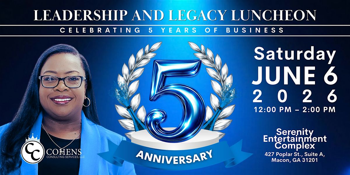 Join us for an inspiring afternoon of connection, empowerment, and leadership at the Leadership & Legacy Luncheon, hosted by Cohens Consulting Services, LLC. This special event brings together professionals, community leaders, entrepreneurs, and emerging leaders who are committed to making a meaningful impact in their organizations and communities.