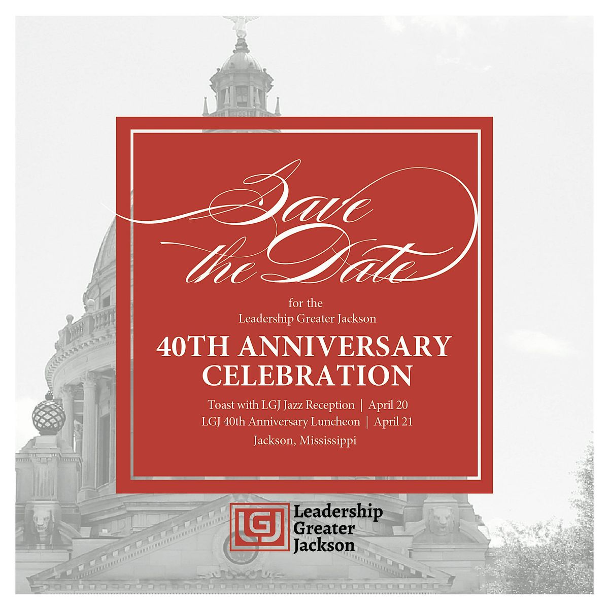 Leadership Greater Jackson invites alumni, community leaders and partners to the 40th Anniversary Leadership Luncheon, commemorating four decades of leadership development in the Greater Jackson community.