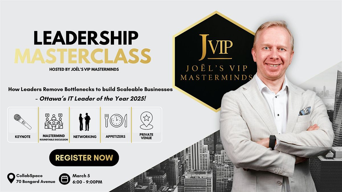6:00 PM – Networking & Appetizers 7:00 PM – Leadership Masterclass + Q&A 8:00 PM – Mastermind Session