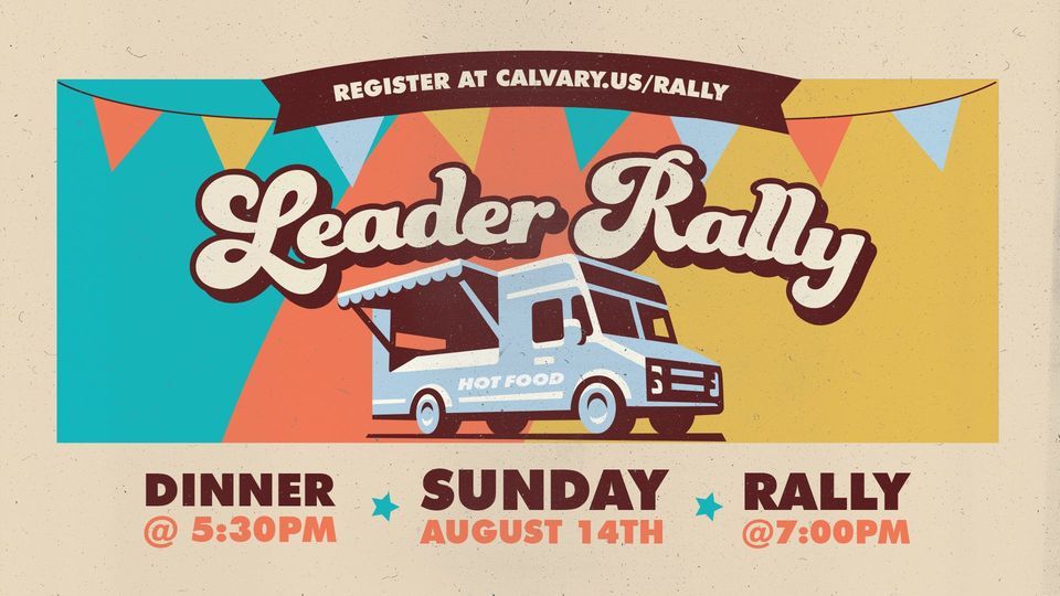 We'll kick off the night with a FREE Food Truck Rally, games and give aways, followed by a time of worship led by Calvary's Worship Leaders from all campuses. Pastor will encourage our teams and cast vision for the Fall as we lean into all the God has for us.