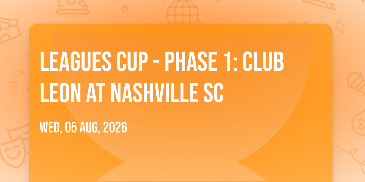 π Location: 36.1314, -86.7675β¨ Enter a world of endless possibilities at Leagues Cup - Phase 1: Club Leon at Nashville SC, where every moment tells a story! ποΈ The stunning Geodis Park in vibrant Nashville, TN transforms into a realm of wonder on August 5th, 2026 at 08:30 AM. π They have crafted an experience that goes beyond the ordinary, combining elements of surprise, delight, and pure entertainment. Every detail has been thoughtfully considered to ensure your journey with us is nothing short of extraordinary. π― Join fellow adventure seekers and memory makers in this celebration of imagination and innovation. π Reserve your spot today and be part of something truly special!