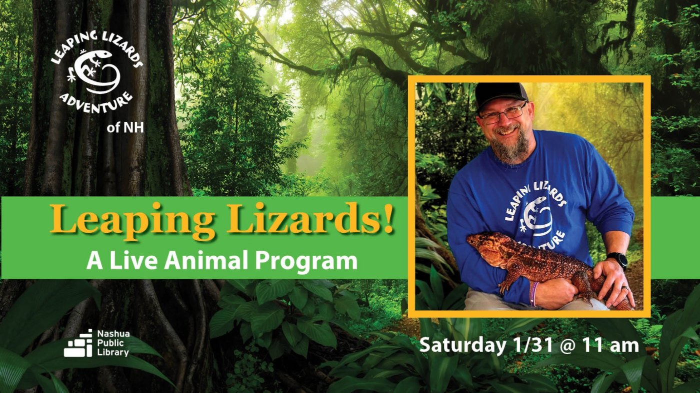 For families with children of all ages. Join Leaping Lizards Adventure of NH for an interactive, family-friendly program featuring live reptiles and exotic animals.