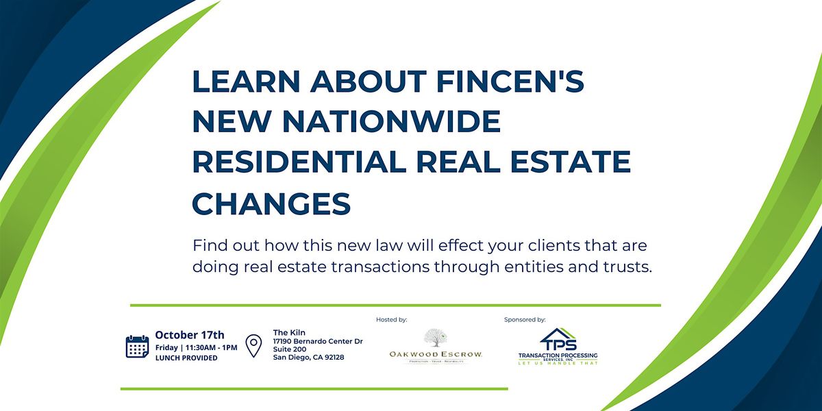 Hosted by Oakwood Escrow and proudly sponsored by TPS Inc., this event will take place at Kiln and will focus on the latest FinCEN updates impacting residential real estate.