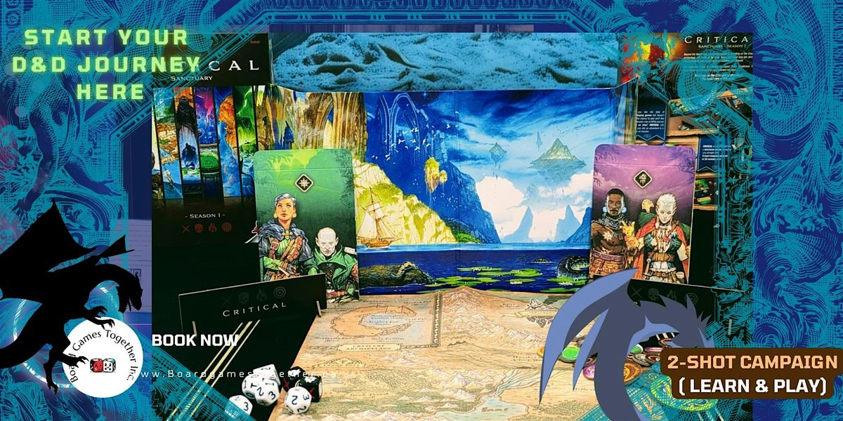 Join us for a wild adventure in the world of D&D, where your choices shape the story, our onsite DM will teach you how to play and you will actually play D&D, weather you are first timer to D&D or not,..one thing gruanteed you will have Fun!
