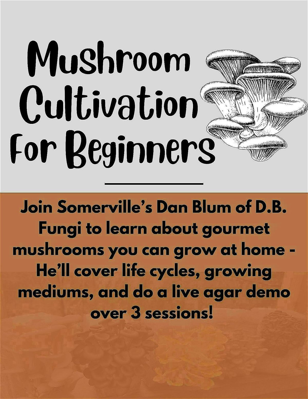 Join Somerville's Dan Blum f D.B. Fungi to learn about gourmet mushrooms you can grow at home!