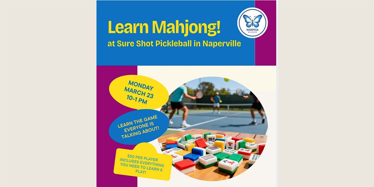 Come join us at Sure Shot Pickeleball for a casual and relaxed morning learning how to play Mahjong! In this beginner-friendly lesson, you'll learn the fundamentals of American Mahjong. We will walk you through the Charleston, how to read the National Mahjong League Card (NMJL) Card, and the steps to creating a winning hand. Come ready to learn, have fun, and discover why Mahjong will be your new favorite hobby!