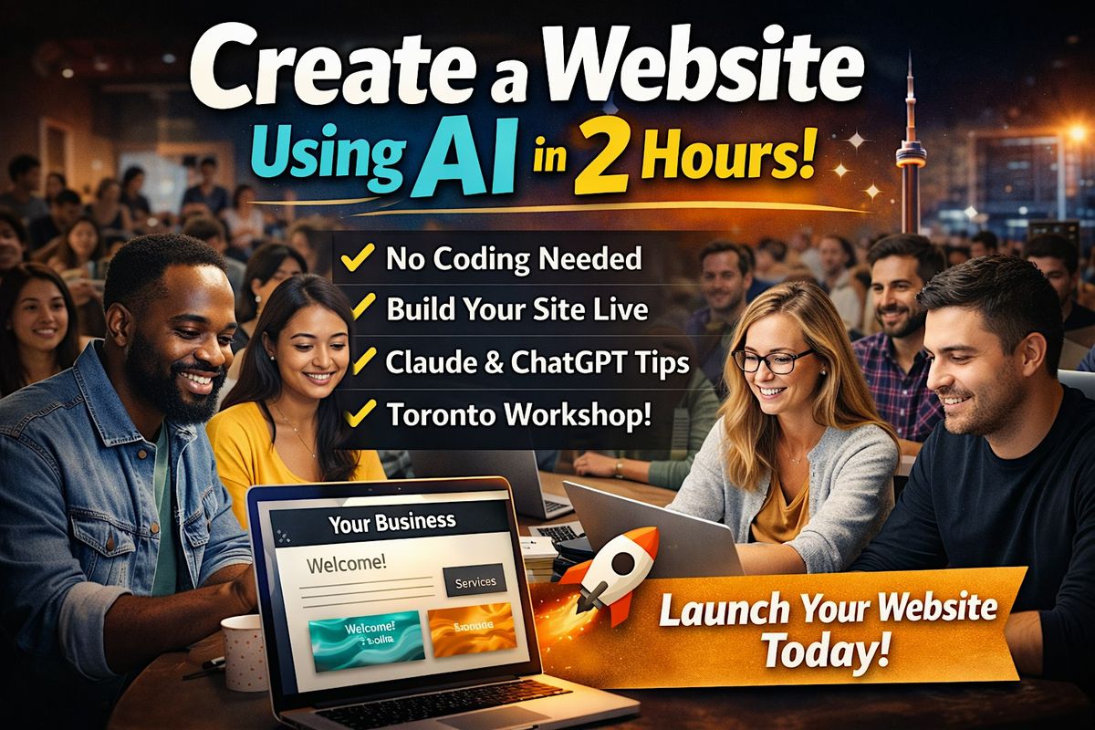 You've got a business idea, a brand, or a side hustle β but your website still doesn't exist. In this hands-on 2-hour workshop in Toronto, you'll go from zero to a live, professional website using the power of AI tools like Claude and ChatGPT.