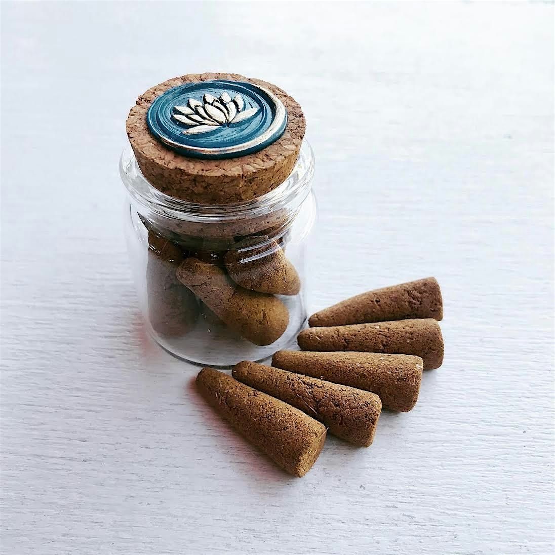 At the end of a 2-week curing period, each participant will have a glass jar of their own hand-rolled cone incense, as well as the core knowledge to continue this spiritual practice at home.