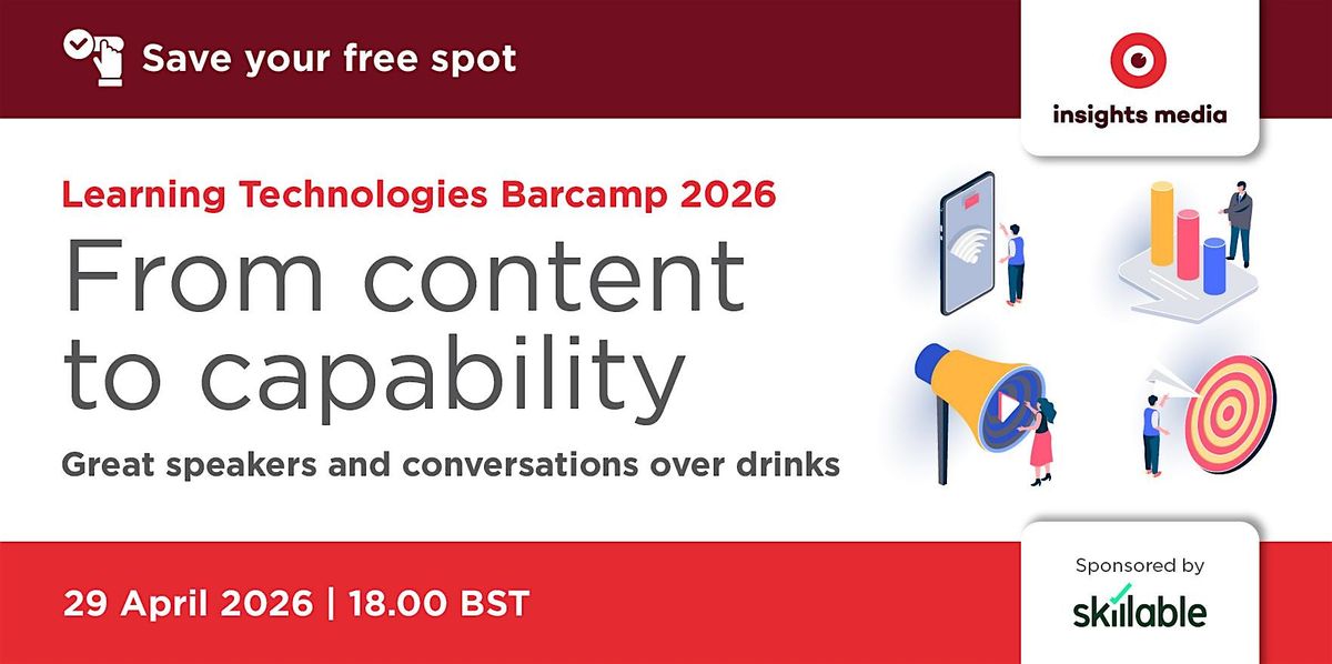 This year’s Learning Technologies Barcamp will explore how AI is changing the focus of corporate learning from delivering content to building capability. Join this discussion to explore what this shift means for learning strategy, roles and instructional design. We have a fantastic line-up of speakers ready to share their perspectives and discuss how learning leaders can rethink their approach in an AI-enabled world.
