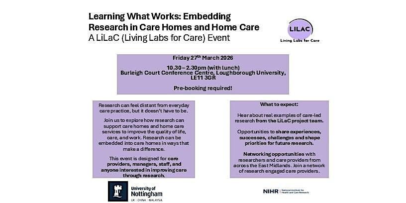 The event will focus on sharing insights, experiences, successes, and challenges of embedding research into care homes and home care settings across the East Midlands.