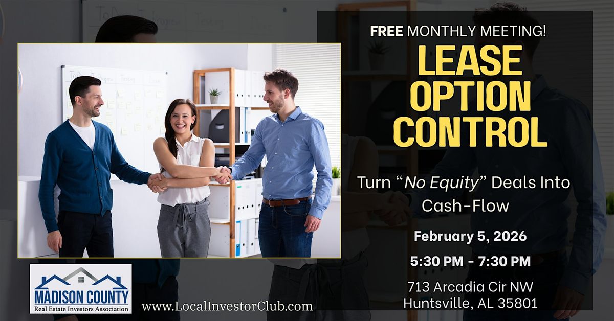 Join us for an in-depth, real-world breakdown of lease option control with someone who has completed hundreds of these transactions — Zack Childress, President of Alabama REIA and Madison County REIA.
