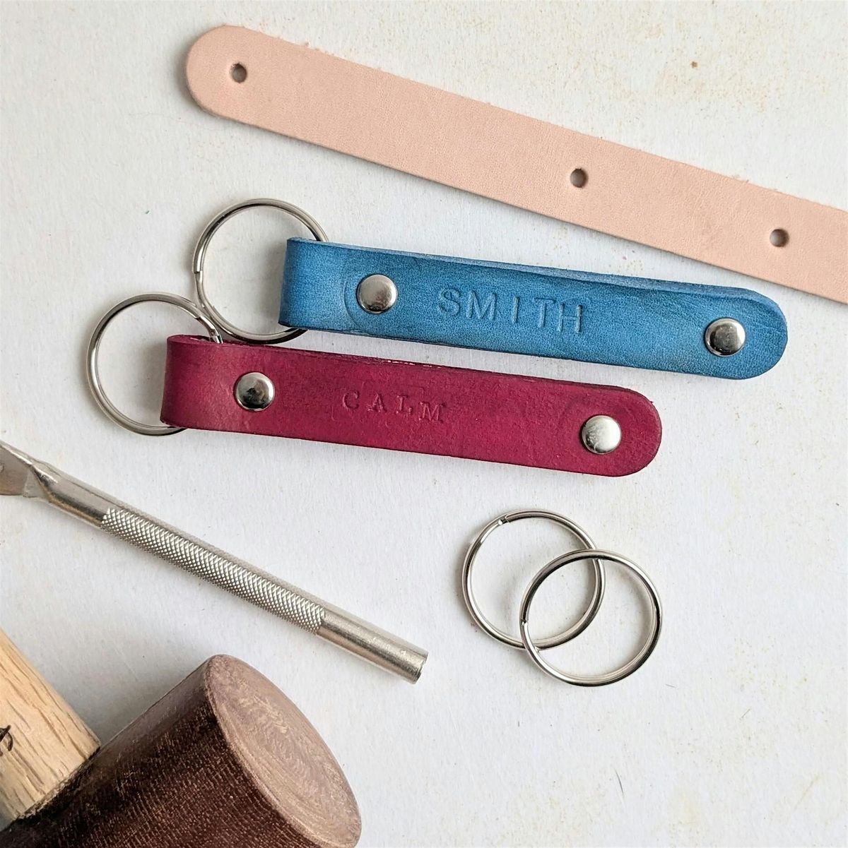 Choose from multiple dye colors to work onto your keychain, or simply keep it natural. This workshop is perfect for Father's Day, Bachelorettes / Bachelor's Party, date nights, anniversaries (think matching keychains!) or just to try a new craft for yourself!