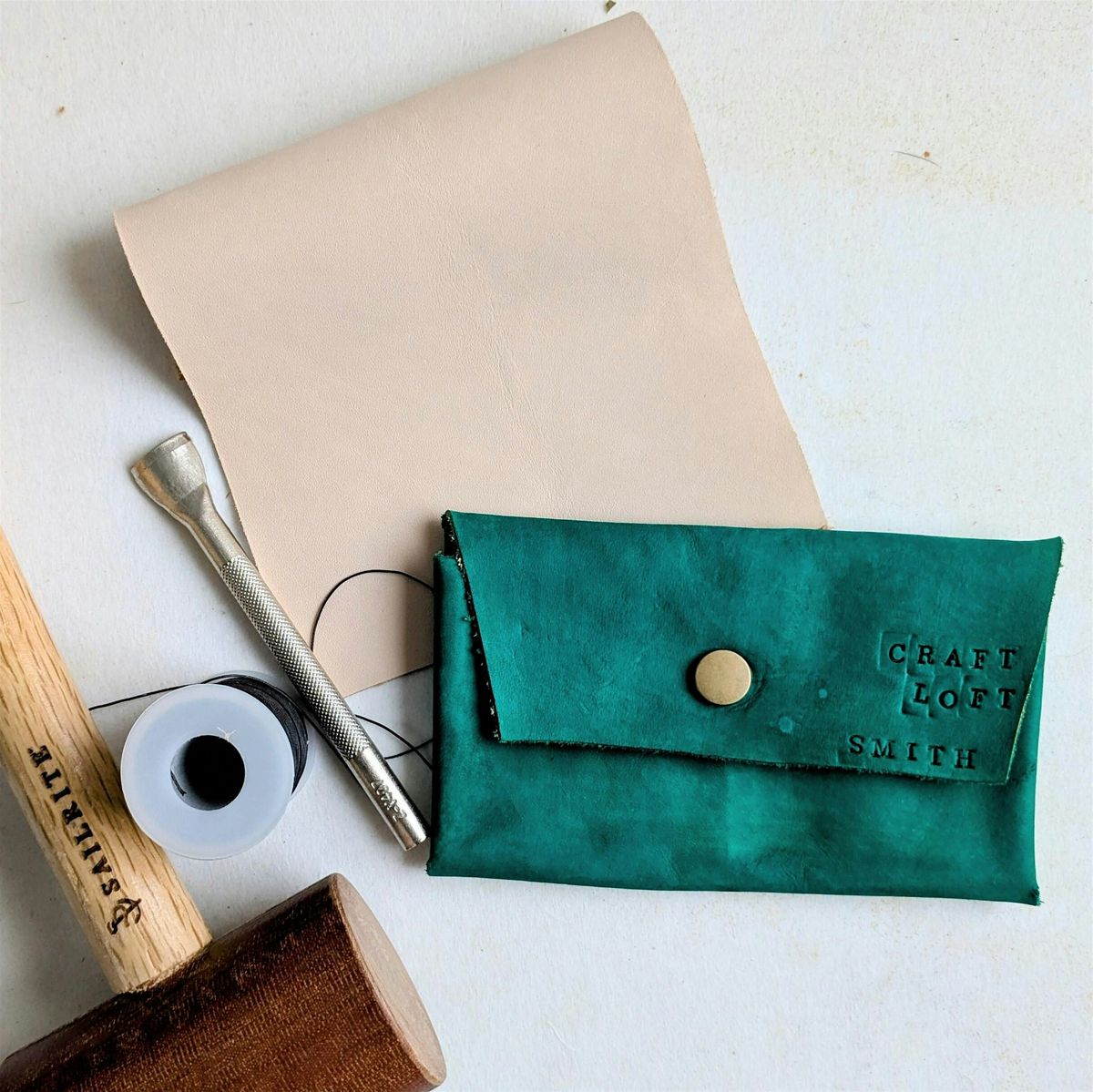 You'll be able to choose from multiple colors of dye to work onto your wallet, or simply keep it natural. You can also inscribe with initials, names, dates or favorite quote to make it extra special. This workshop is perfect for Father's Day, date nights, anniversaries or to level-up your leather-working experience!