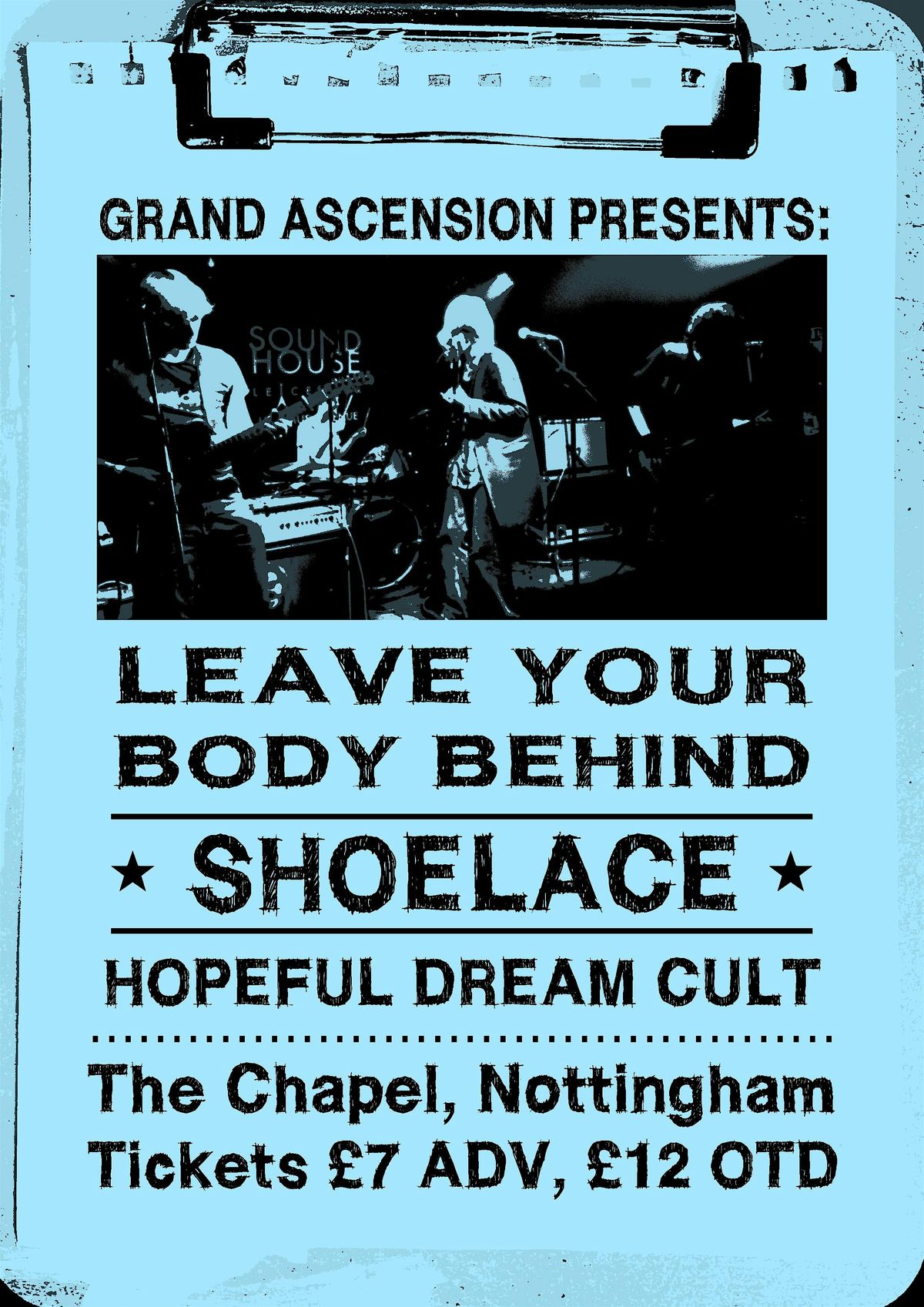 Leave Your Body Behind head to The Chapel, situated in the legendary Angel pub for a night of raucuss with Funky Garage Rock groovers Shoelace and zoned out neo spacemen Hopeful Dream Cult.