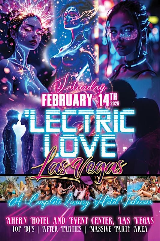 Welcome to 'Lectric Love, Las Vegas! Enjoy a full night of high energy Dance Music at the beautiful Ahern Hotel event center. Top Las Vegas Dj's All Night Long. Multiple Bars, State of the Art Lighting and Sound. Spend your Valentines Evening in a sexy and seductive environment that only Vegas knows how to deliver. Reserved VIP areas and Bottle Service Available.