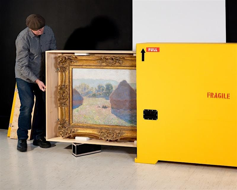 Image: Claude Monet’s Meules, milieu du jour [Haystacks, midday], being prepared for loan through Sharing the National Collection. Image: National Gallery Australia