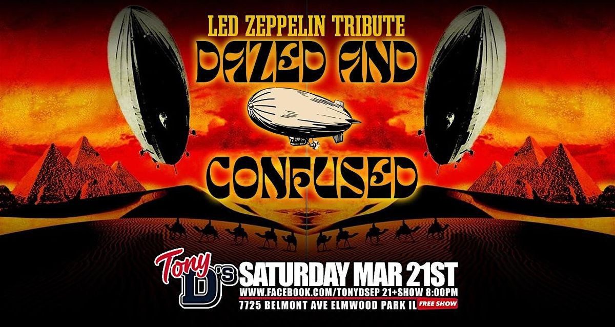 Join us in person at Tony D's for an epic evening with Dazed and Confused paying tribute to Led Zeppelin. Expect killer riffs, classic vibes, and a night full of rock 'n' roll magic. Don't miss out on this unforgettable tribute show that’ll have you feeling the legendary energy of one of rock’s greatest bands!