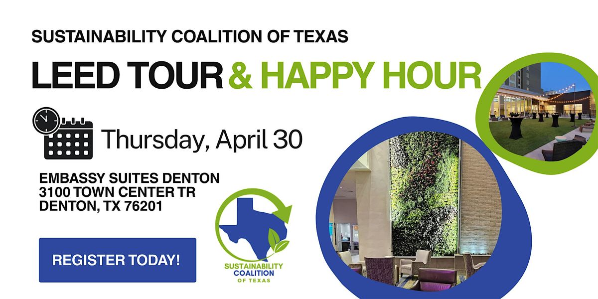 You're invited to an exclusive tour and happy hour networking event at the LEED Certified Embassy Suites in Denton, TX. Discover the sustainable features that earned this building its Gold certification, then stick around for drinks and meaningful connections with professionals who share an interest in sustainability and innovations.