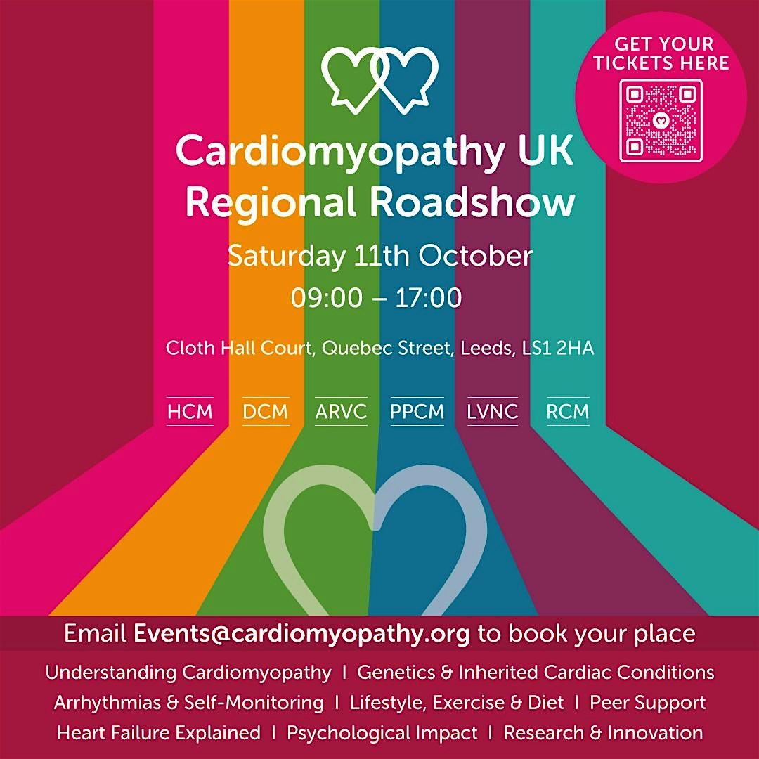 Cardiomyopathy UK are excited to return their Regional Roadshow format, beginning at Cloth Hall Court, Leeds, Saturday 11th October.About this Event