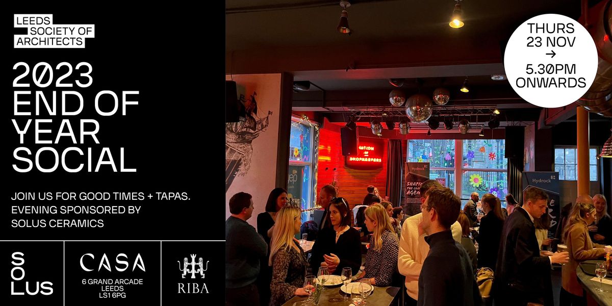 Join us for good times & Tapas, while helping see out another fantastic and busy year for the Leeds Society of Architects at our End of Year Social Event. We’ll be celebrating the branch’s achievements and hear about the exciting projects already planned for next year year.