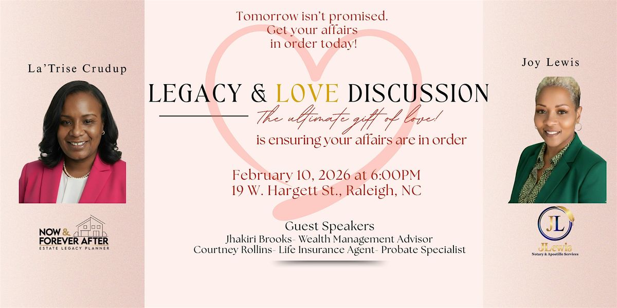 If you’ve ever felt confused about what it really means to “get your affairs in order,” this intimate and empowering discussion is for you. Love & Legacy is a safe, welcoming space for honest conversations about planning for the future and protecting the people you love.