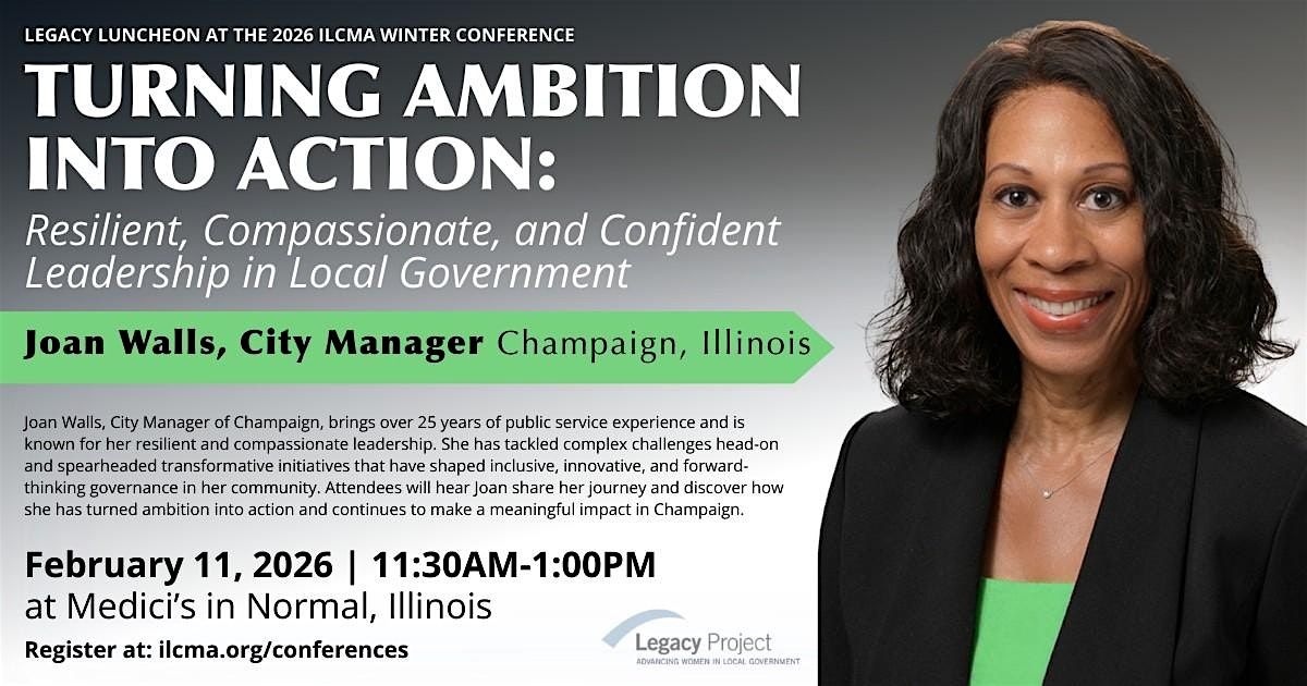 Join us for an inspiring Legacy Project Luncheon as we welcome Joan Walls, City Manager of Champaign, for a candid conversation on leadership in local government. With more than 25 years of public service experience, Joan has built a reputation for resilient, compassionate, and confident leadership—turning vision into action during times of change and challenge.