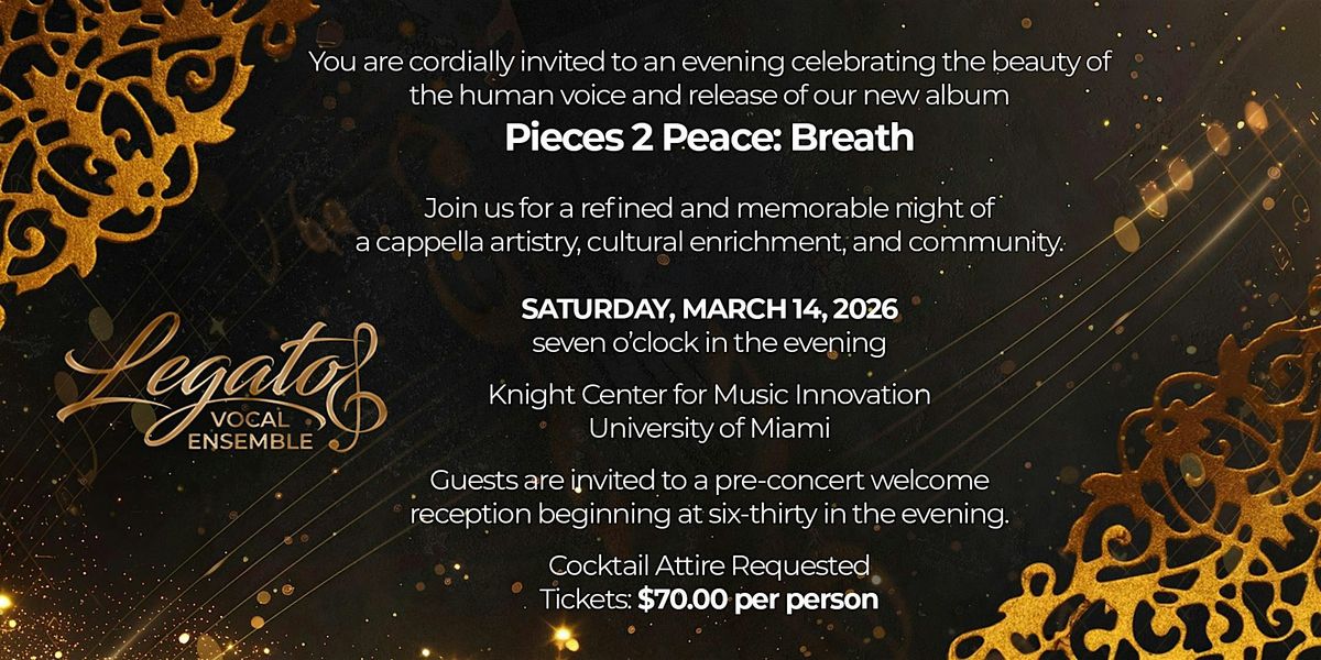 The wait is over! Antonia N. Wilson and the Legato Vocal Ensemble International are set to premiere selections from their newest album, Pieces 2 Piece – Breath. Don’t miss out—come and celebrate an elegant evening of a cappella artistry, jazz performances, and culture that honors the beauty of the human voice and fosters a vibrant sense of community.