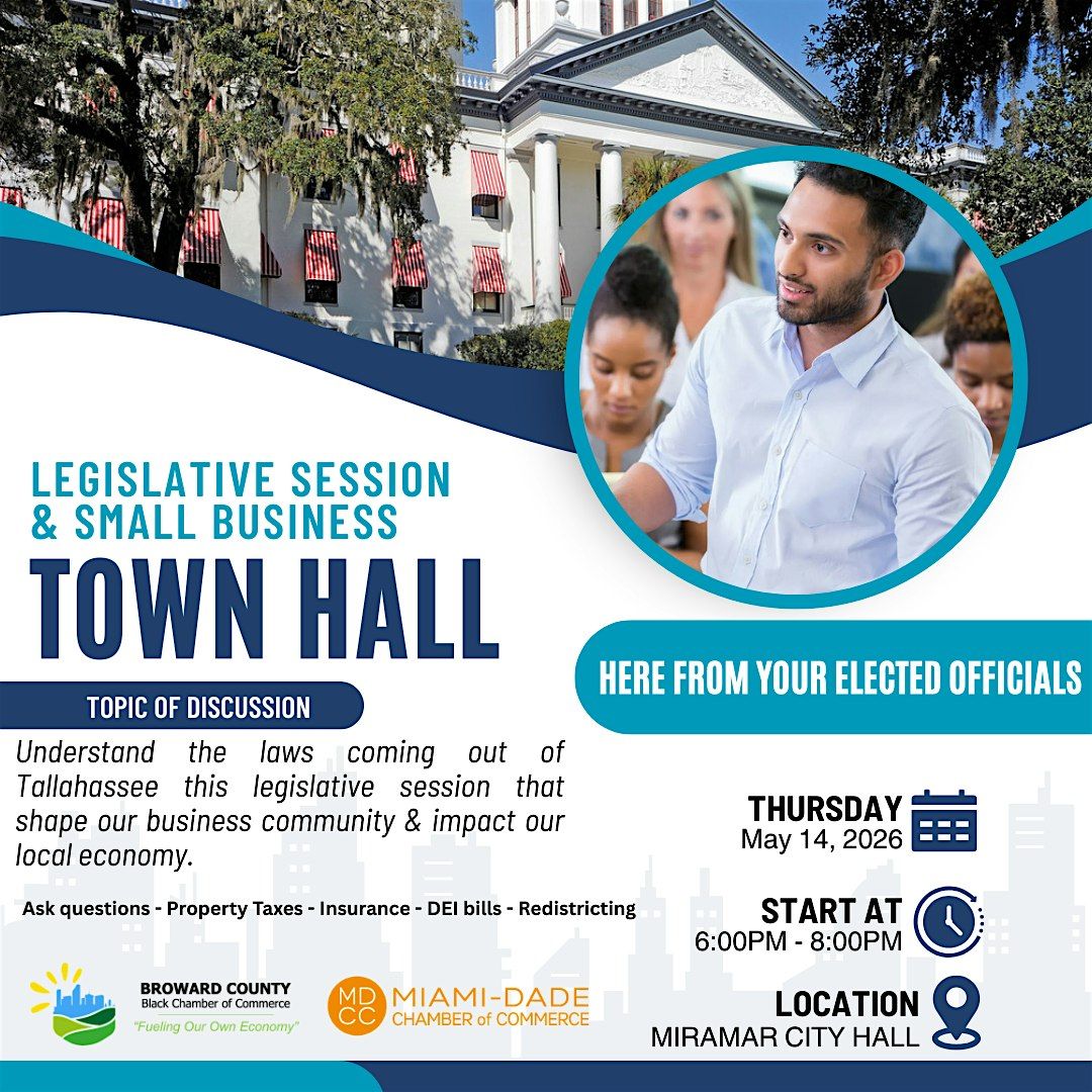 Join the Broward County Black Chamber and the Miami-Dade Chamber for The Legislative Season & Small Business Town Hall, an engaging and informative session where state legislators return from the Capitol to share key outcomes from the recent legislative session. This is your opportunity to hear firsthand about the decisions, policies, and funding priorities that will shape our local economy and business environment.