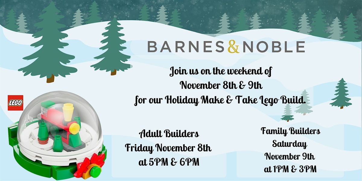 Join us for a fun and free LEGO building event! on Friday, November 8th for Adult Only Builders, or on Saturday, November 9th for Family Builders. For this build you will be creating your very own Holiday Snowglobe! You can either stay and craft it with us or take this LEGO set home to assemble at your leisure. Wishing you a joyful holiday season!