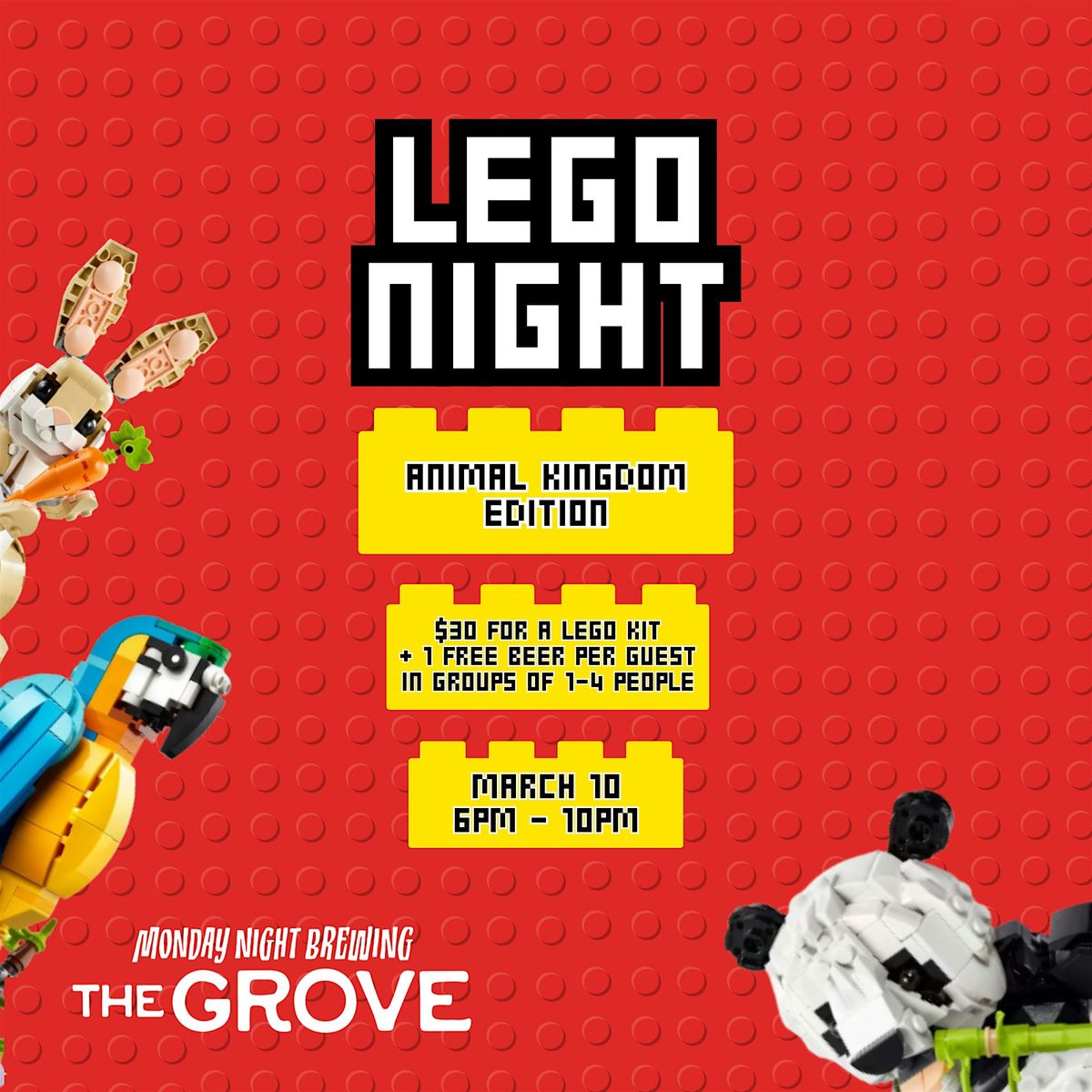 Each lego set purchased comes with 1 free beer for teams of up to 4 people.