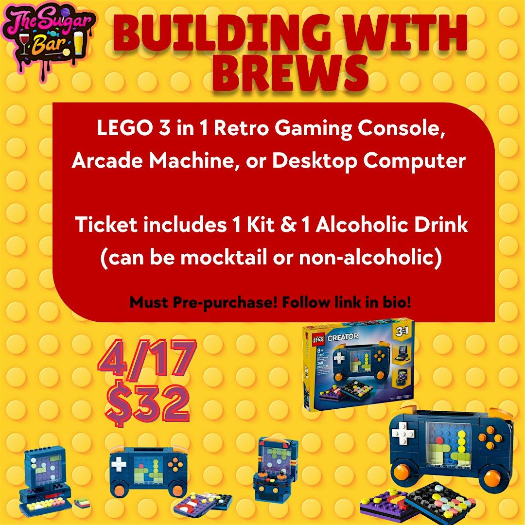 Join us for our monthly Lego night! Package includes this awesome Lego kit & a drink! Must pre purchase! Come in anytime during business hours on the 17th to redeem!