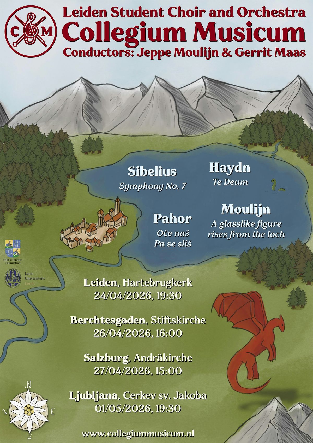 From the 24th of April until the 3rd of May next year, we will go on a lustrum tour to Austria and Slovenia with around 120 students of L.S.K.O. Collegium Musicum. In Berchtesgaden, Salzburg and Ljubljana, we will give free concerts for the local people there. The repertoire consists of a handful of carefully picked pieces: Sibelius' Symphony no. 7, Haydn's Te Deum, a number of songs by Slovene Karol Pahor and a special piece composed by our own orchestra conductor Jeppe Moulijn. He is doing this in honor of our association's 90th birthday, setting to music a poem composed especially for this anniversary by CM member Aedan Boender. This will make our concert in Leiden on the first day of our tour the world premiere of this piece.