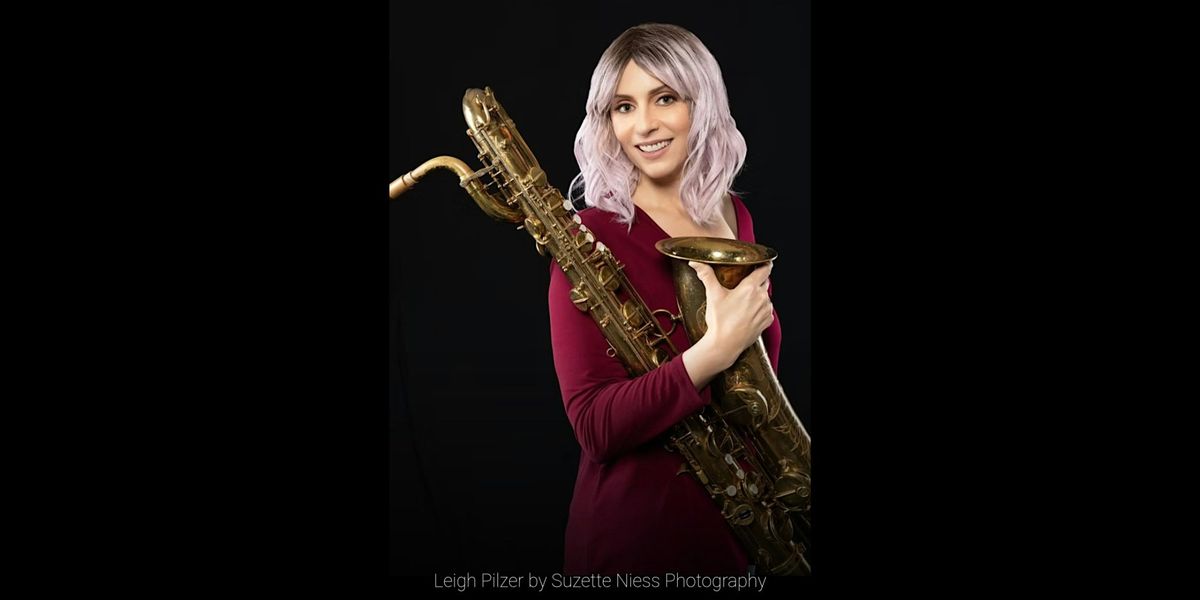 Washington, DC native Leigh Pilzer is a baritone saxophone specialist, composer, arranger, and educator. Her performance resume includes appearances with the Smithsonian Jazz Masterworks Orchestra, The DIVA Jazz Orchestra, the Bohemian Caverns Jazz Orchestra, the National Symphony Orchestra, Baltimore’s Soulful Symphony, and more. She is also a bandleader in her own right, leading the Leigh Pilzer Startet, her all-star quartet/quintet; organ group Leigh Pilzer’s Low Standards; and her latest project, Leigh Pilzer’s Seven Pointed Star. She also co-leads PALS, a duo with bassist Amy Shook and JLQ, the Jen Krupa-Leigh Pilzer Quintet. Pilzer has presented her groups to enthusiastic audience response at top venues including Blues Alley, Keystone Korner, the National Gallery of Art Sculpture Garden, and the Atlas Performing Arts Center, to name a few.