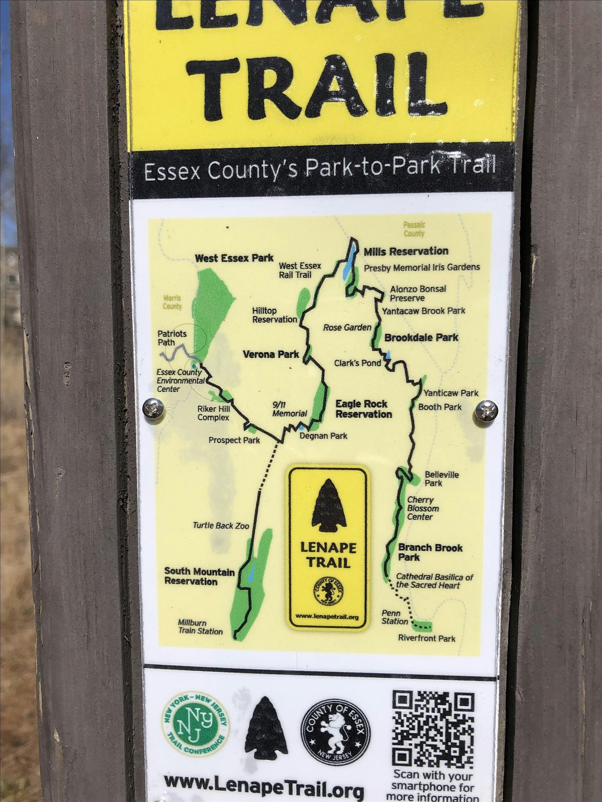 This 36-mile walk starts in the parking lot across the street from the Millburn First Aid squad and train station and follows an old marked trail called the "Lenape Trail" in beautiful South Mountain, Eagle Rock, HIlltop Reservation and Mills Reservations.