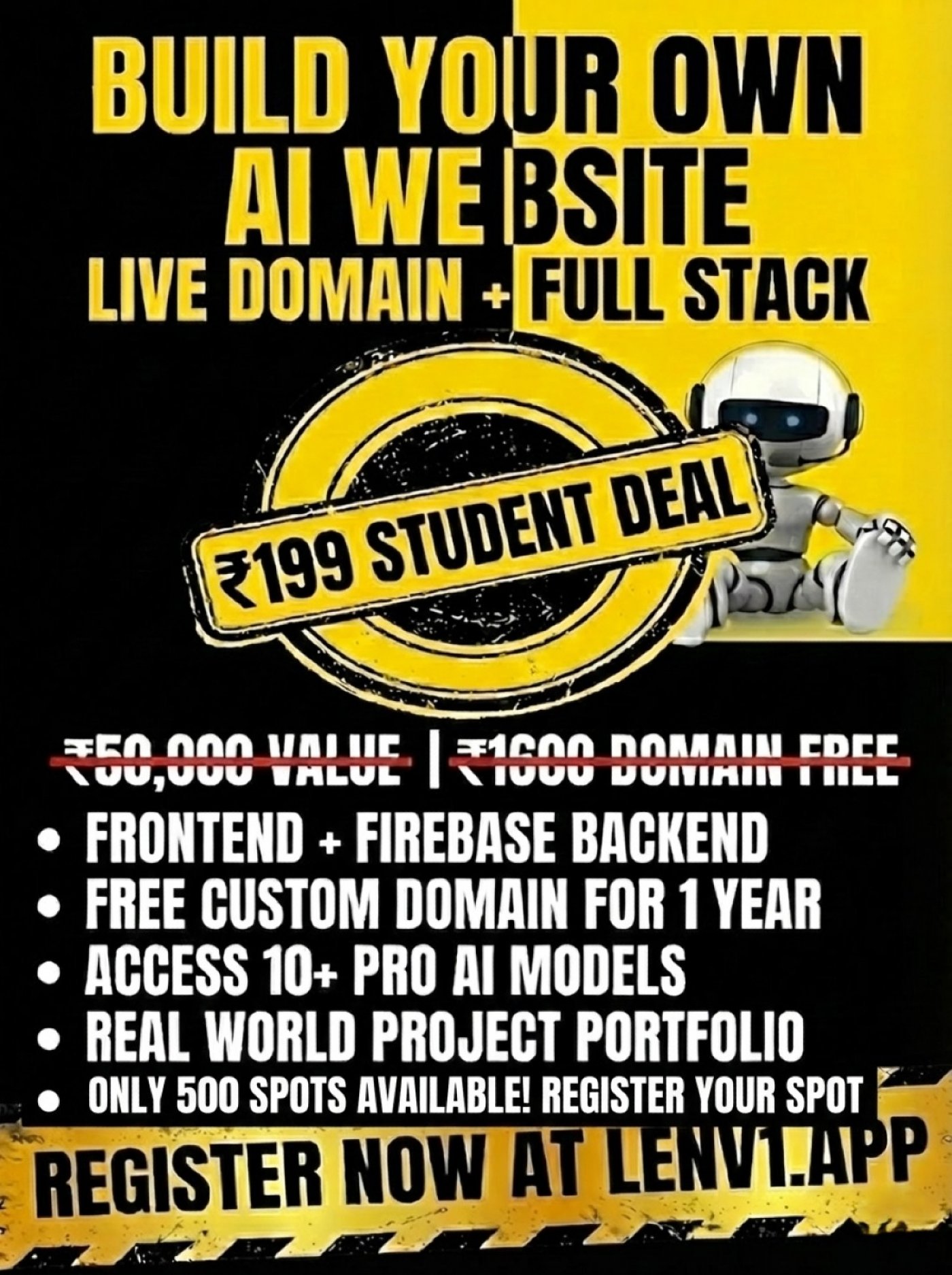 Build Your Own Website with AI is a complete hands-on full-stack development webinar designed to teach participants how to build, deploy, and manage a real-world web application using AI tools, even with minimal prior experience.