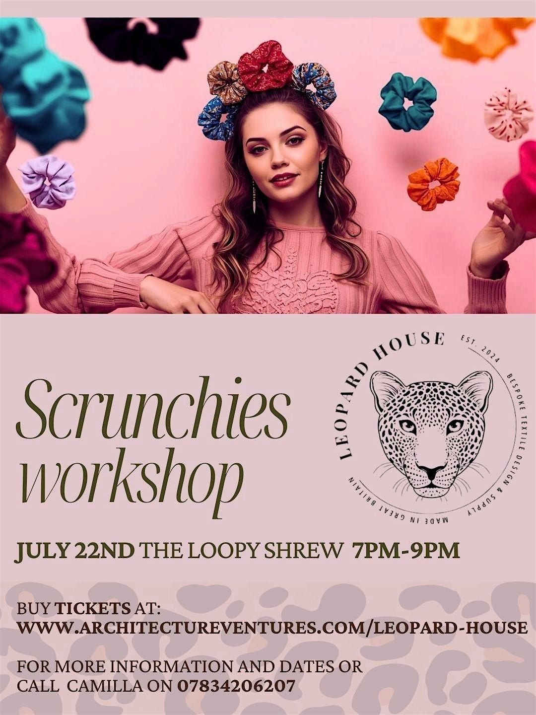 Leopard House Interiors is delighted to present a hands-on Scrunchie Making Workshop, perfect for anyone looking to create a fun, handmade accessory. During the workshop, you will make your own scrunchies, with tickets priced at £20. Participants are asked to bring their own sewing machine and fabric. All tuition will be provided, and tea and coffee will be available throughout the session for you to enjoy as you create.
