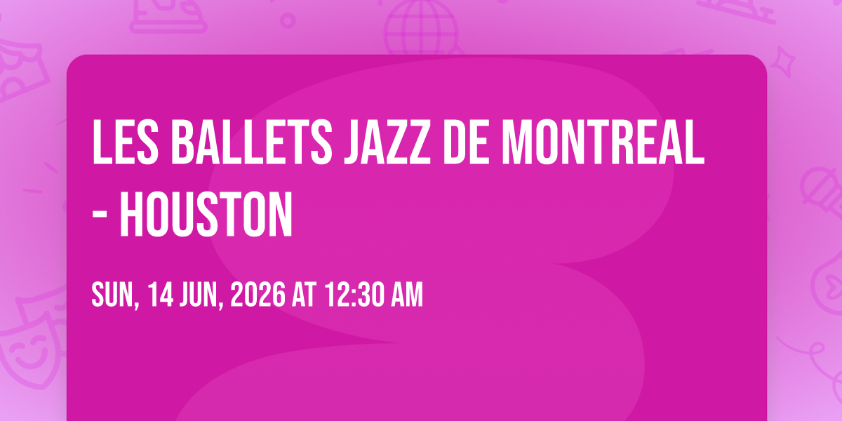 📍 Location: 29.7609, -95.365✨ Enter a world of endless possibilities at Les Ballets Jazz De Montreal - Houston, where every moment tells a story! 🏛️ The stunning Jones Hall for the Performing Arts in vibrant Houston, TX transforms into a realm of wonder on June 14th, 2026 at 12:30 AM. 🌟 They have crafted an experience that goes beyond the ordinary, combining elements of surprise, delight, and pure entertainment. Every detail has been thoughtfully considered to ensure your journey with us is nothing short of extraordinary. 🎯 Join fellow adventure seekers and memory makers in this celebration of imagination and innovation. 🎊 Reserve your spot today and be part of something truly special!