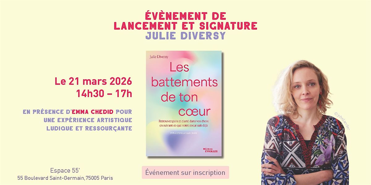 Assistez au lancement du livre Les battements de ton cœur de Julie Diversy, en présence d'Emma Chedid pour une expérience artistique ludique et ressourçante !