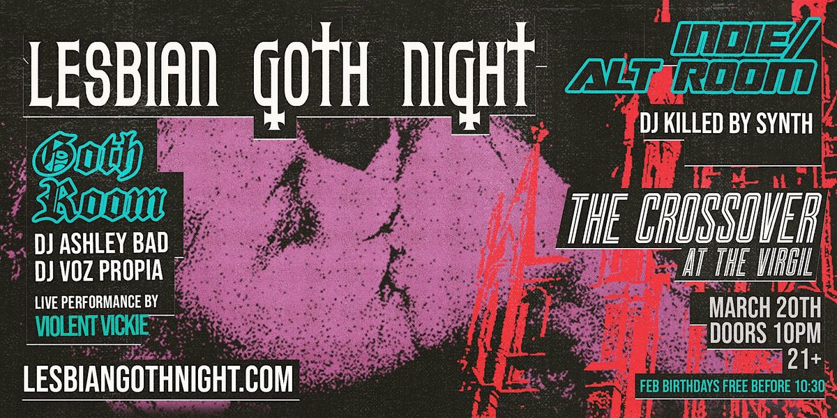 Lesbian Goth Night is a sapphic-focused, FLINTA-centered event. Attendees are strongly encouraged to leave cisgender heterosexual male counterparts, at home. “Allies” are no longer encouraged, as this designation has been repeatedly misused in ways that compromise the safety and comfort of our community. This policy exists to maintain a safe, respectful space free from harassment, fetishization, unicorn hunting, or swinger behavior. By purchasing a ticket, you agree to adhere to these terms and to respect our space. This policy will be strongly enforced at the door.