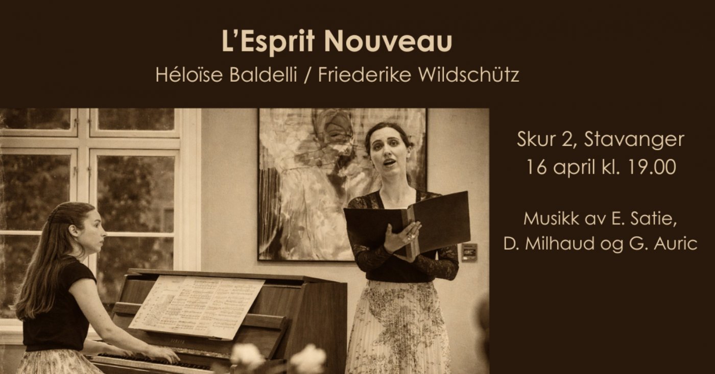 Duo Apropos inviterer til lanseringskonsert for sitt debutalbum The Voice of the Esprit Nouveau. Med musikk av Georges Auric, Darius Milhaud og Erik Satie tas publikum med til Paris i mellomkrigstiden – en tid preget av raske samfunnsendringer, nye medier og kunstnerisk nytenkning.