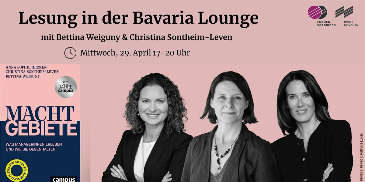 Am Mittwoch, 29. April 2026 sprechen Bettina Weiguny und Christina Sontheim-Leven in der Bavaria Lounge der Messe München über die zentralen Thesen des Buches und laden zum Austausch ein. Beginn ist um 17 Uhr. Die Lesung findet in angenehmer Atmosphäre mit Getränken und Snacks statt.