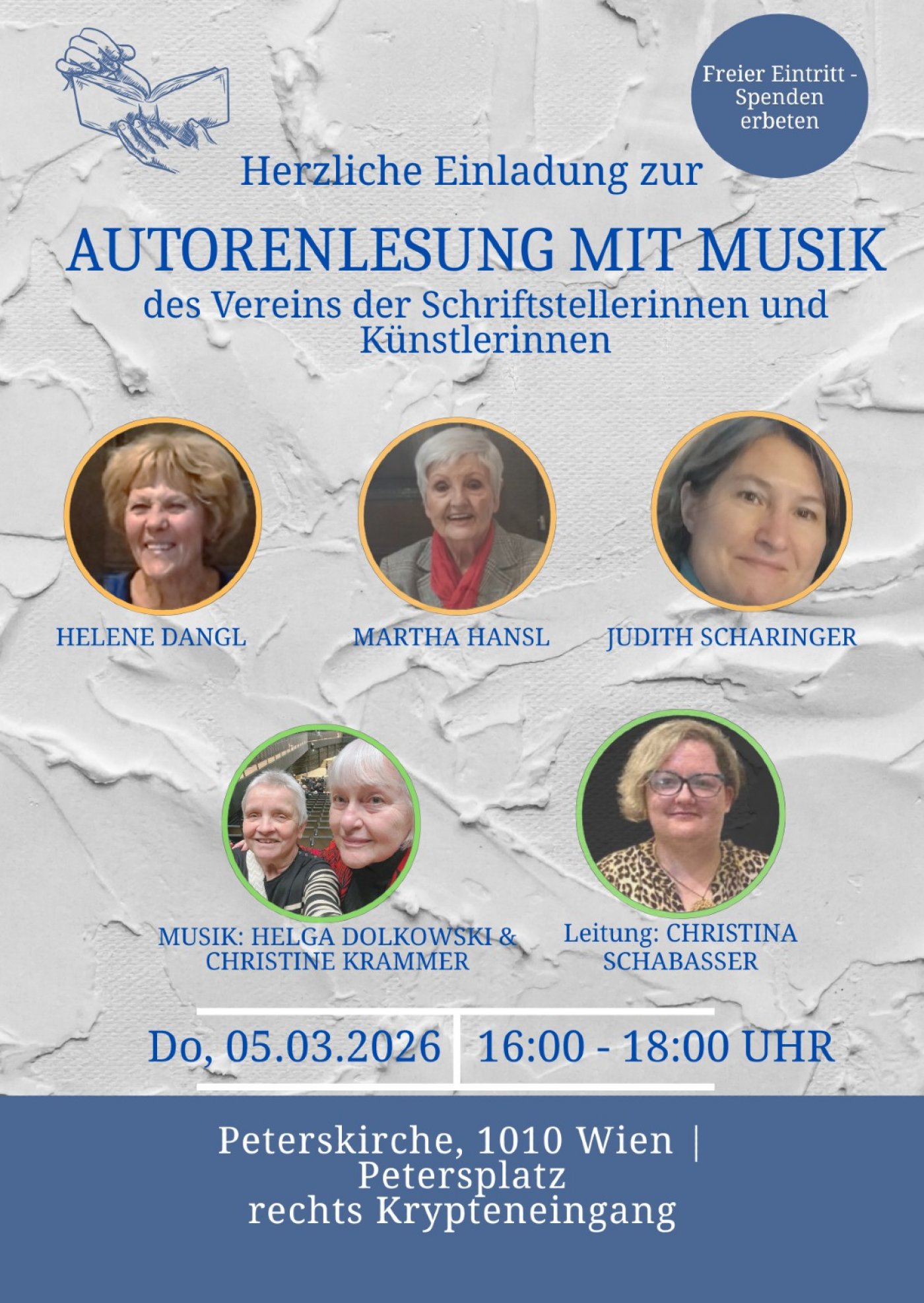 Der Verein der Schriftstellerinnen und Künstlerinnen lädt zur Lesung mit Musik in die atmosphärische Peterskirche.