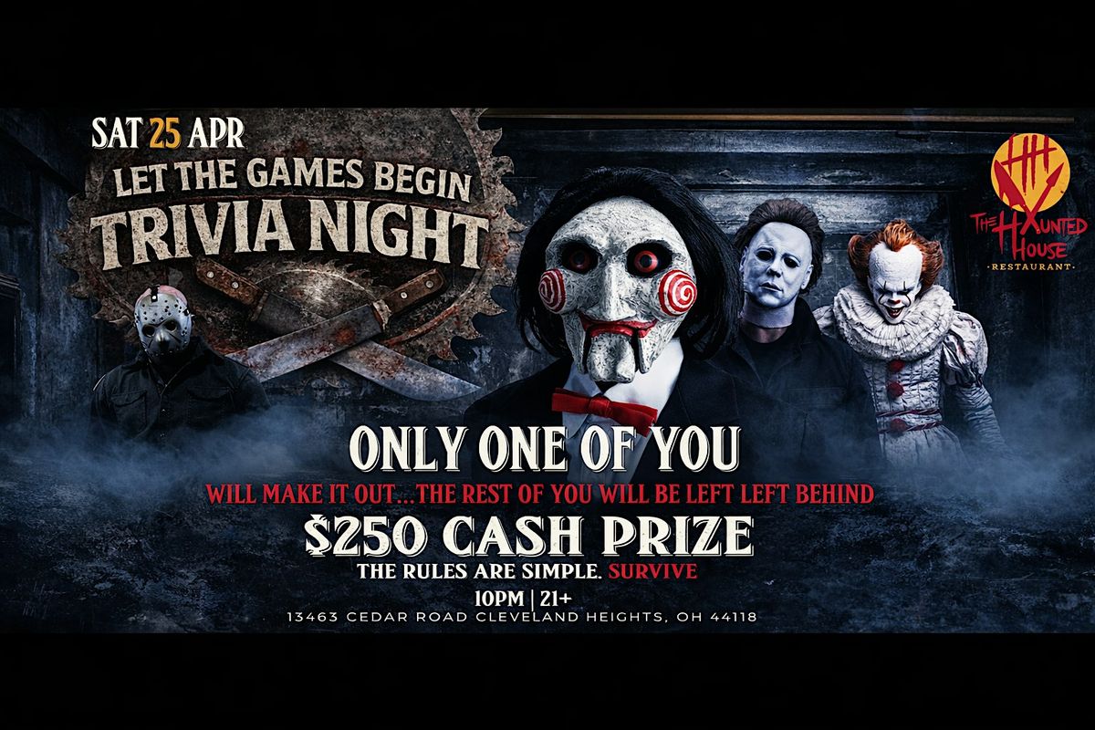 Get ready for a spine-chilling evening full of screams, laughs, and brain teasers! Join us in person as we dive into the world of horror movies, legends, and creepy facts. Whether you're a horror fanatic or just love a good scare, this trivia night is for you. Gather your friends, bring your A-game, and prove you know your slashers from your spirits. Don't miss out on a night of fun, frights, and fierce competition!